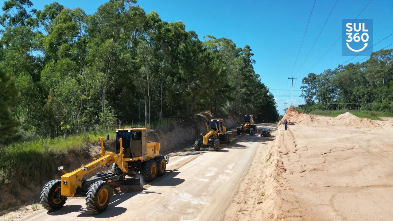 Obras e Infraestrutura Prefeitura de Camaquã coloca as três novas patrolas em operação para reforçar manutenção no interior