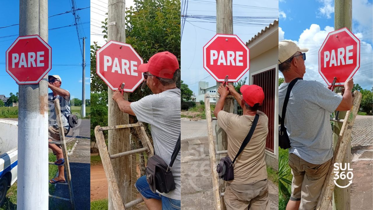 Trânsito Últimas Divisão de Trânsito intensifica troca e manutenção de placas de sinalização em Camaquã