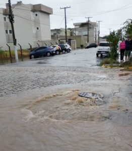 Nos bairros, os efeitos da chuva também foram amplos. Moradores do Getúlio Vargas, Olaria, São José, Dr. Rosinha, Viégas, Centro e Floresta relataram ruas tomadas pela água, pátios alagados e bueiros sem capacidade de escoar o volume acumulado.